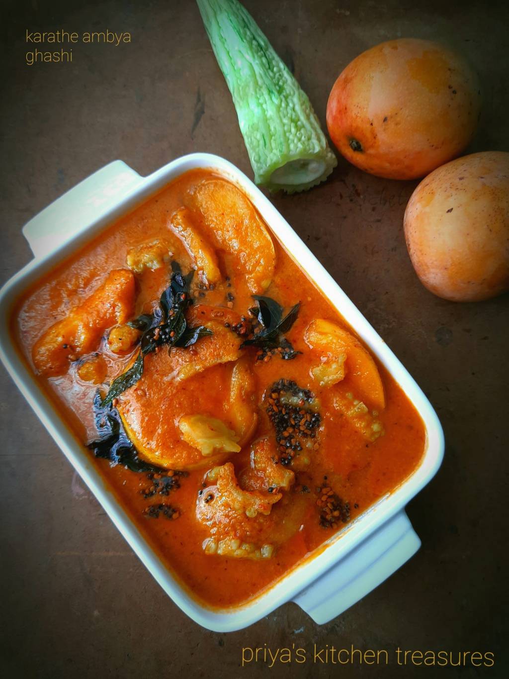 Karathe ambya ghashi ( bitter gourd and ripe mango curry )