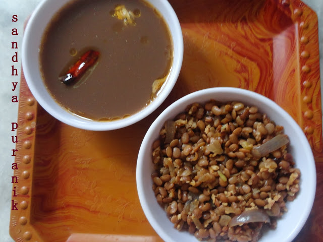 Kulith or the Horsegram is very healthy legume. We konkanis prepare various dishes with this and Kadi is one among them. Kadi is thin soup extracted by boiling the horsegram and then seasoning it with garlic . This is very famous and a special dish for the Konkanis in Karnataka. Earlier this used to be cooked on wooden fire slowly to get a thick paste like which would be stored for months together and then diluted to make kadi .But with changing times the wooden fire became rarity and the cooking technique too changed. The paste is now available in Mangalore- Udupi stores all over. This is how I prepare it at home .