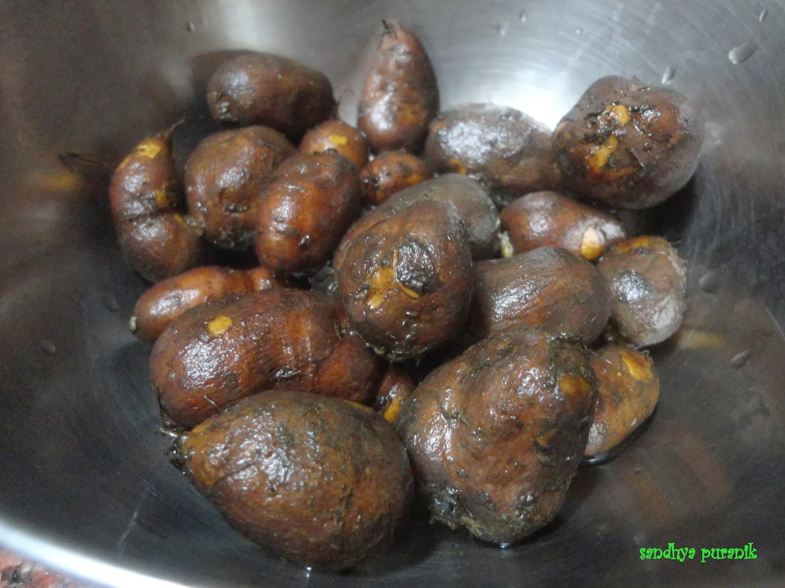 - Peel the skin of the Kooka and wash it thoroughly changing water several times to remove the mud and the dirt.