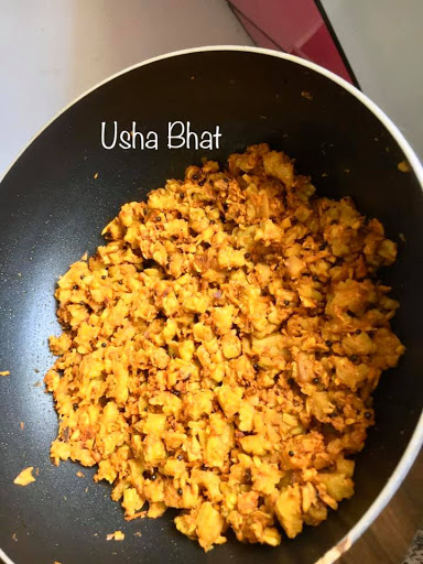 5. When it is cooked add the remaining oil & let roast on slow fire . the taste appreciates the longer it is roasted .