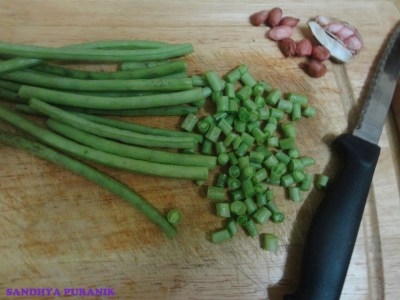 - Strip the ends of the cowpea beans ,wash and chop them into small pieces.