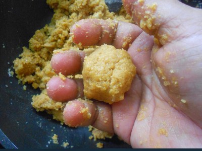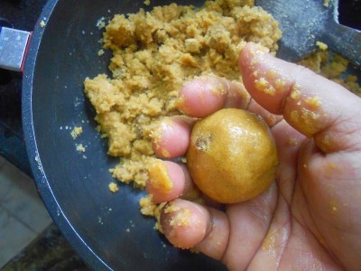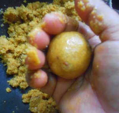 - Then roll the ball in your hand like shown in the pic so that it takes a perfect round shape & starts to look shiny too .