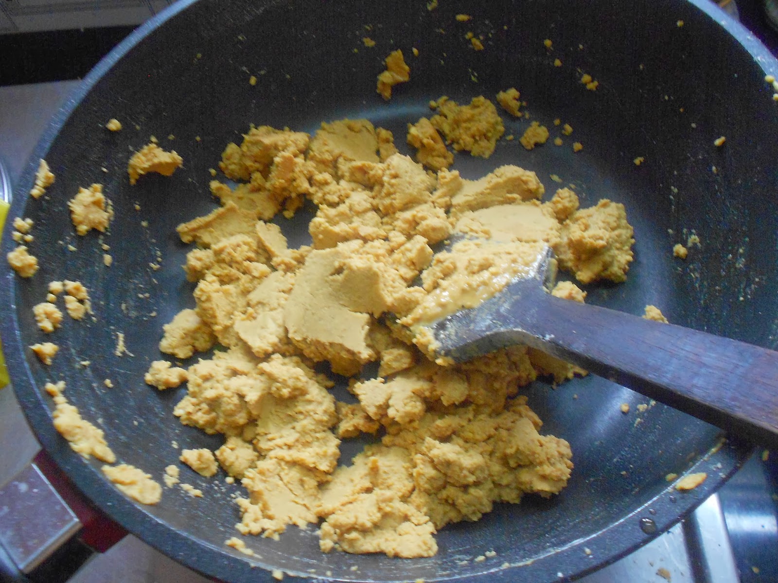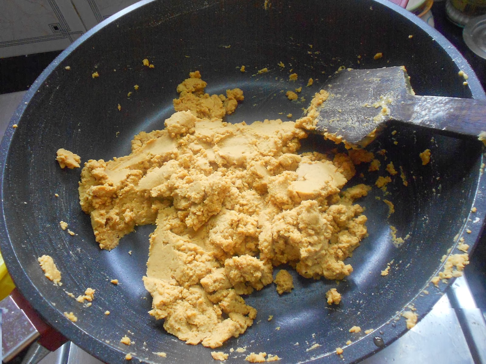 This is quite easy to make if you have the patience to stir fry the besan -ghee mixture