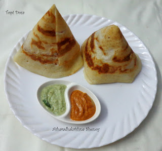 Step 8: Your Topi dosa is ready to serve.Prepare similar dosa and serve in a plate with red and white chutneys