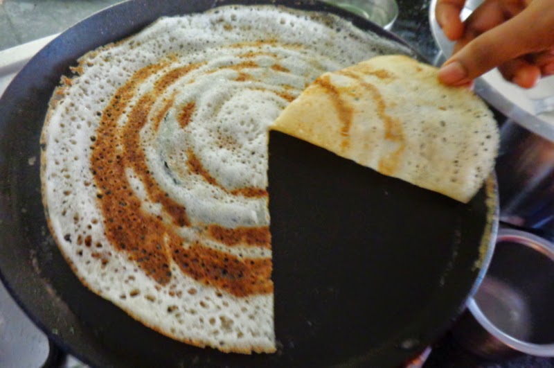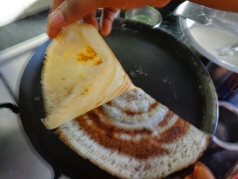 Step 4: Cut the dosa using a clean scissors or spatulla as shown in the picture