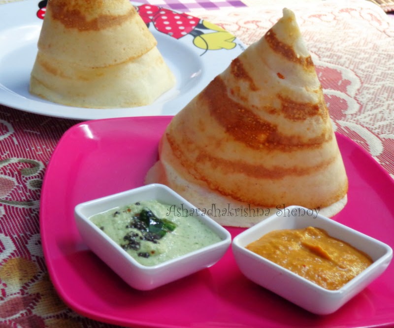 Step 8: Your Topi dosa is ready to serve.Prepare similar dosa and serve in a plate with red and white chutneys