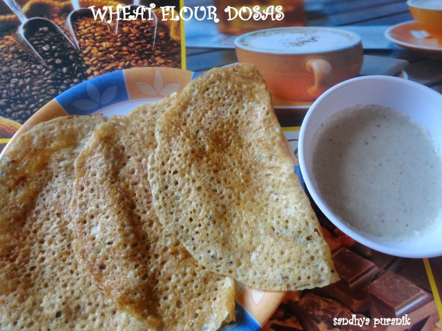 Wheat flour dosas are instant dosas which does not require fermentation.They can be prepared quickly without worrying about the soaking or the grinding part.It is also called as gova peeta phanna polo as some add seasoning to the batter before preparing dosas as ‘phanna’ means seasoning in Konkani.
