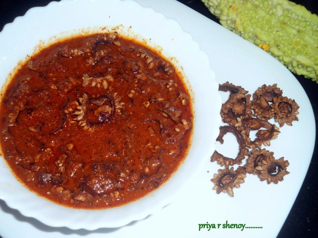 Note:- Here instead of using fresh bitter gourd , I have used the sun dried bitter gourd…I deep fried them and followed the same procedure.