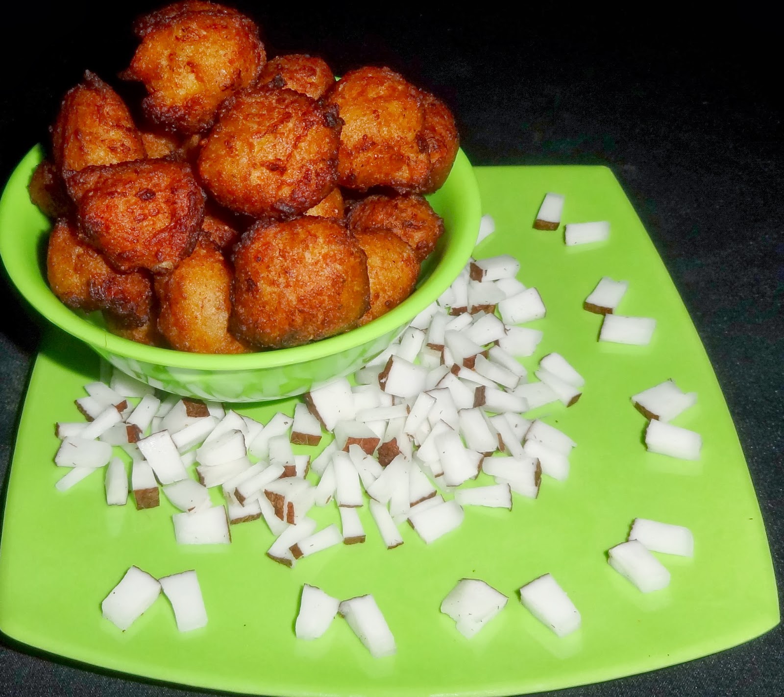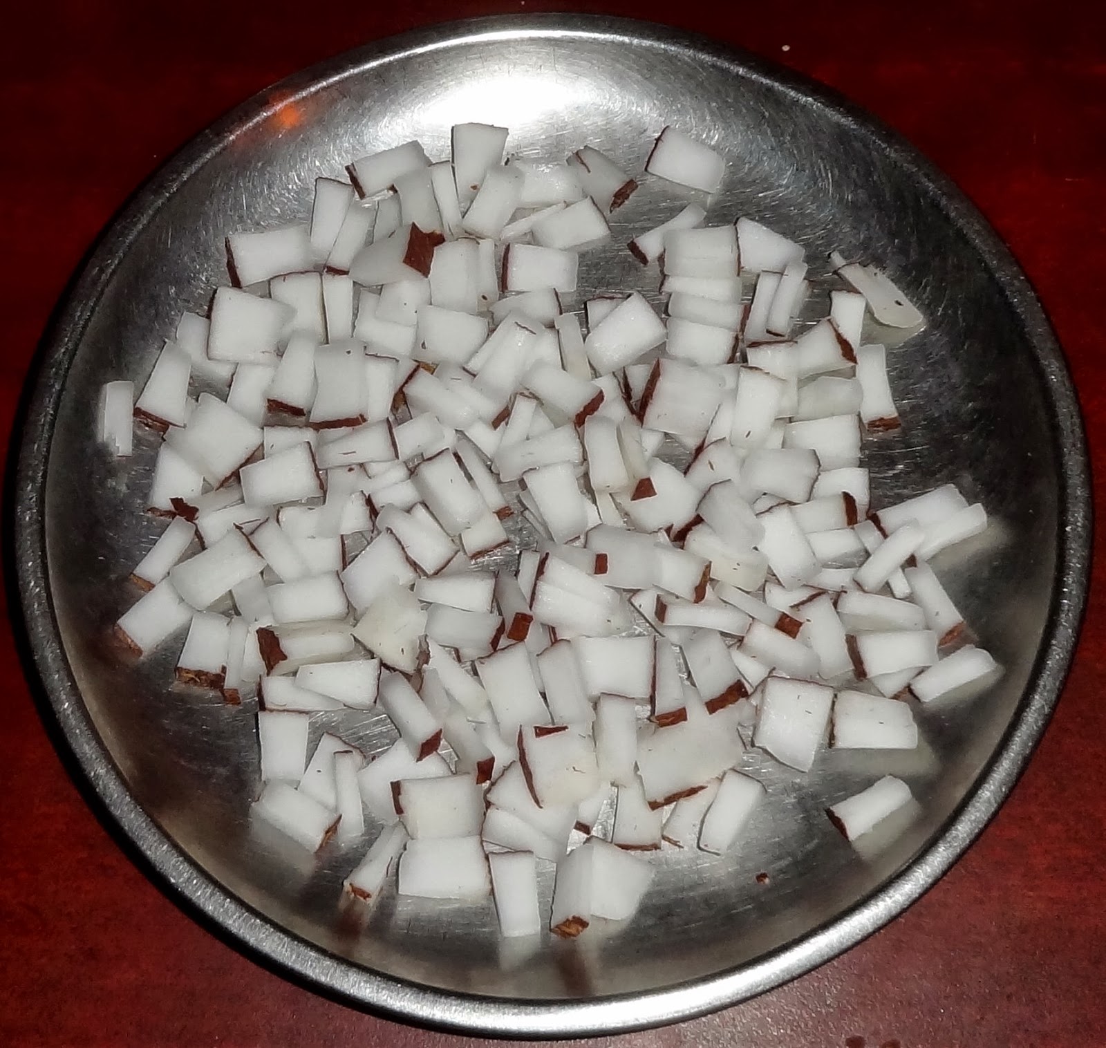 - Cut coconut into small pieces and keep aside.