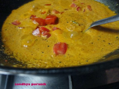 This  goes well with chapatties .The best combo is sheeth,(rice)daali(konkani dal)  and the spicy vaghu. :)😋😋🐅🐅