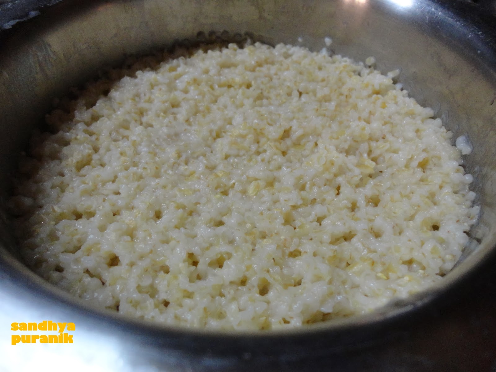- Drain the water and add double the amount of water as that of broken wheat and pressure cook it for 2-3 whistles.