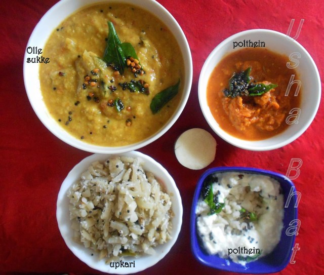 We GSB’s have so many varieties of tasty dishes with Gabbo ..check out recipes of Gabbya Upkari, Gabbya ghari, Gabbya Polthein. Here I am giving the recipe for Gabbya olle sukke – a gravy based dish to be had with rice . (here olle means wet since its gravy dish unlike the dry sukke )