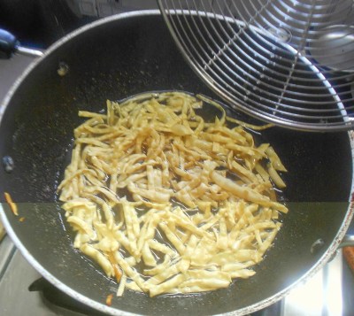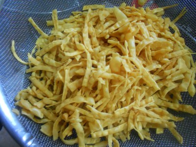 Now fry the pappad strips .Fry in small batches ,as they fluff up   a lot.