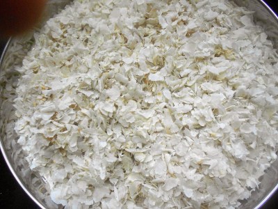 Phovu is called by various names as – Flattened rice , Rice flakes , beaten rice etc . For this upkari we need white phovu of the thin variety  (also known as nylon phovu)Ingredients;
