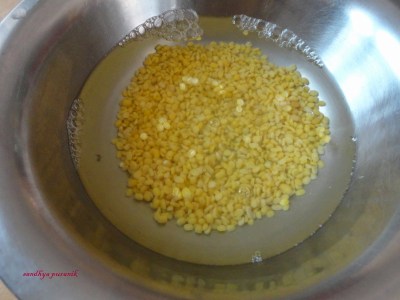 - Chana dal is also used to prepare the same dish,in that case you need to soak the dal overnight or minimum 4-5 hours and then proceed.If you don’t like the raw chana dal you can par boil ,cool and then use it but mung dal is more preferred .