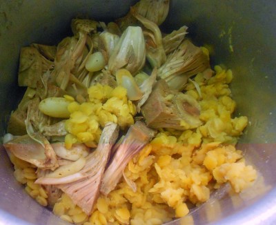 - Cut the jackfruit into pieces after removing the skin & thorns . Wash well & pressure cook with the dal & sol .