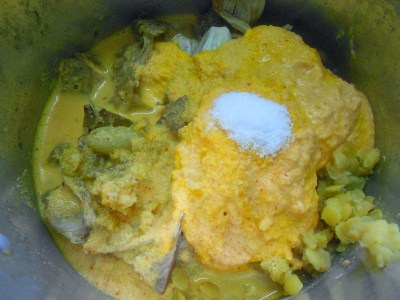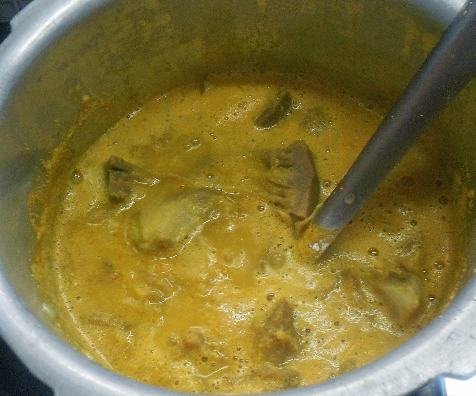 There is no need of adding ambsaniche ( tomatoes / dharambya sol ) for this ghassi . this is supposed to taste non spicy – goddachi .