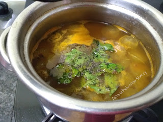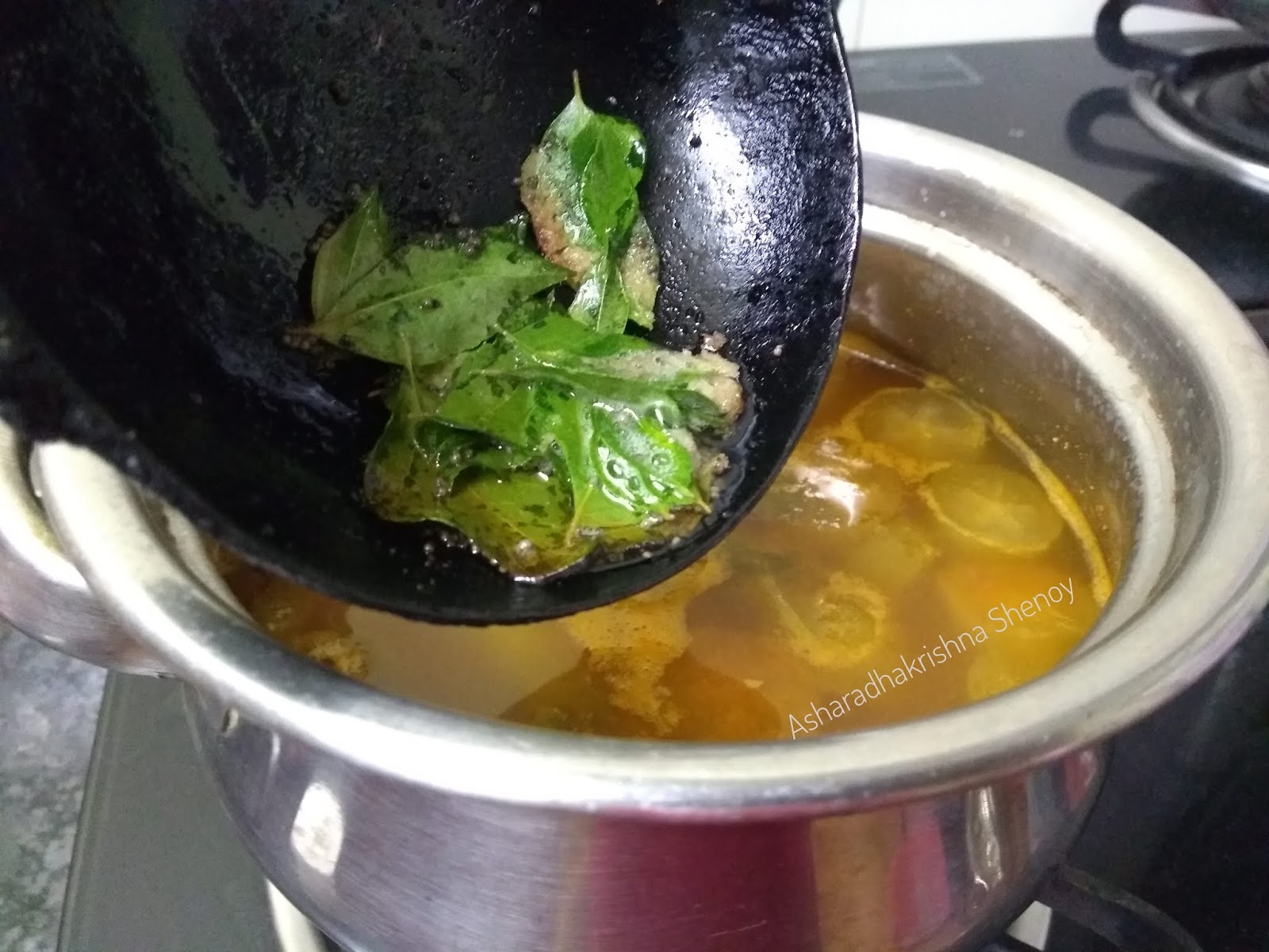 2.If you do not get bimbul or not aware of this fruit,just dont worry you can still prepare the same saaru with tamarind juice or with brined Avalo (gooseberry).In that case just skip bimbul and rest of the method is the same.