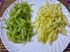 6. Add the chopped peel of ash gourd and chopped potato into it.