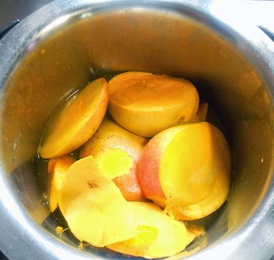 - Add a little water to just cook the mangoes !