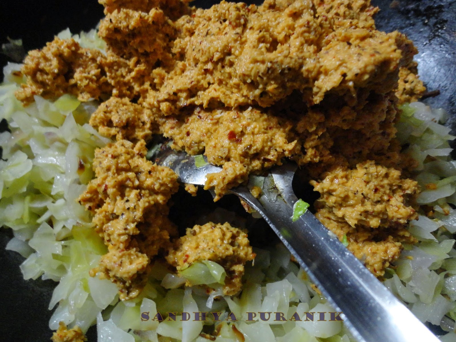 Mix well so that everything comes together,,,and simmer for few more minutes till the cabbage is cooked and evenly coated with the masolu(ground paste ).