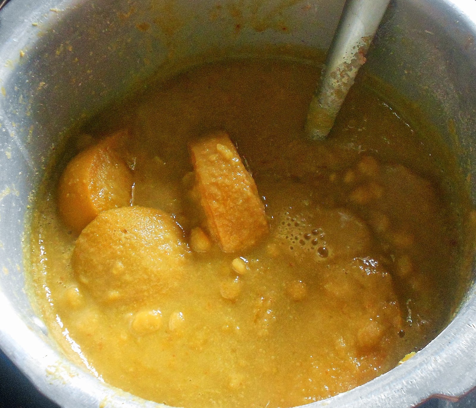 I have already given the Kelya Ambat recipe here . This is yet again a Kochi GSB speciality to be done when mangoes are in season!