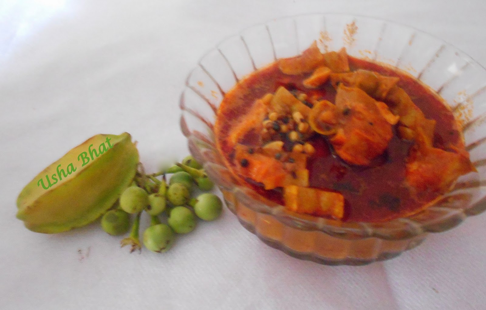 Here is a popular instant spicy side dish for idlis . dosas , upma , rice etc . This is made with Jackfruit seeds (bikkand ) , Starfruit (Dharan Karmbal ) & Turkey berry (chunde phal ). You may also use Bimbul / Birmi karmbal instead of starfruit.