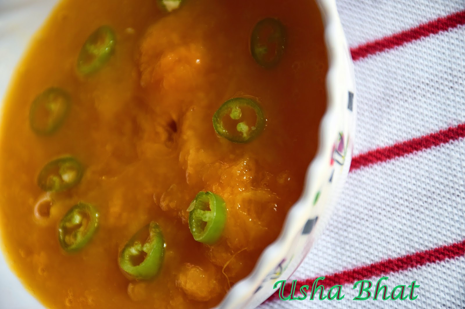 Here is a quick and easy way to use very ripe mangoes .They can be used as a side dish !