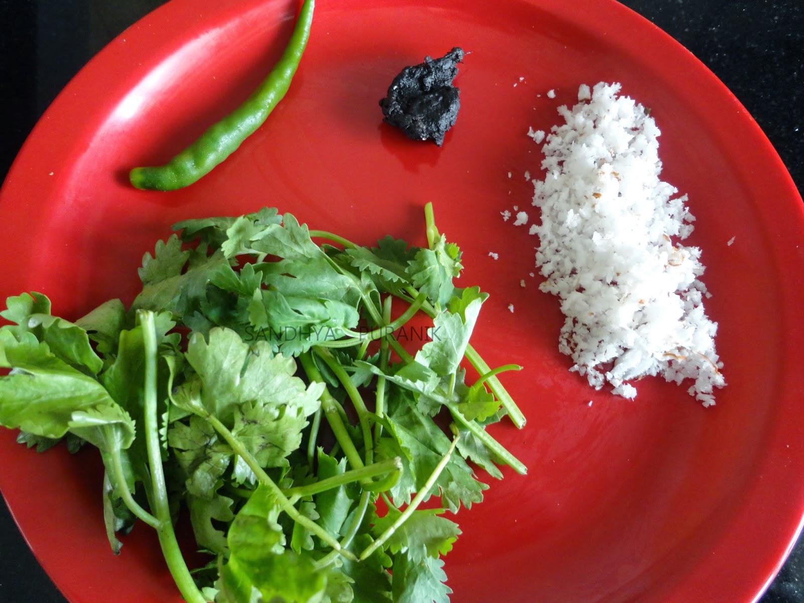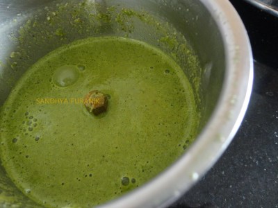 - Grind together the coriander leaves ,coconut. green chilli and tamarind using little water to a smooth paste as shown …