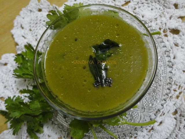 Corainder leaves are one of my favourite herbs. I just love using it in my dishes be it South Indian or our own Konkani cuisine. I have already posted the Gojju recipe prepared using coriander leaves. Today I am sharing the recipe of Saaru using this herb which I learnt from my Amma. A very simple and easy recipe with very few ingredients .