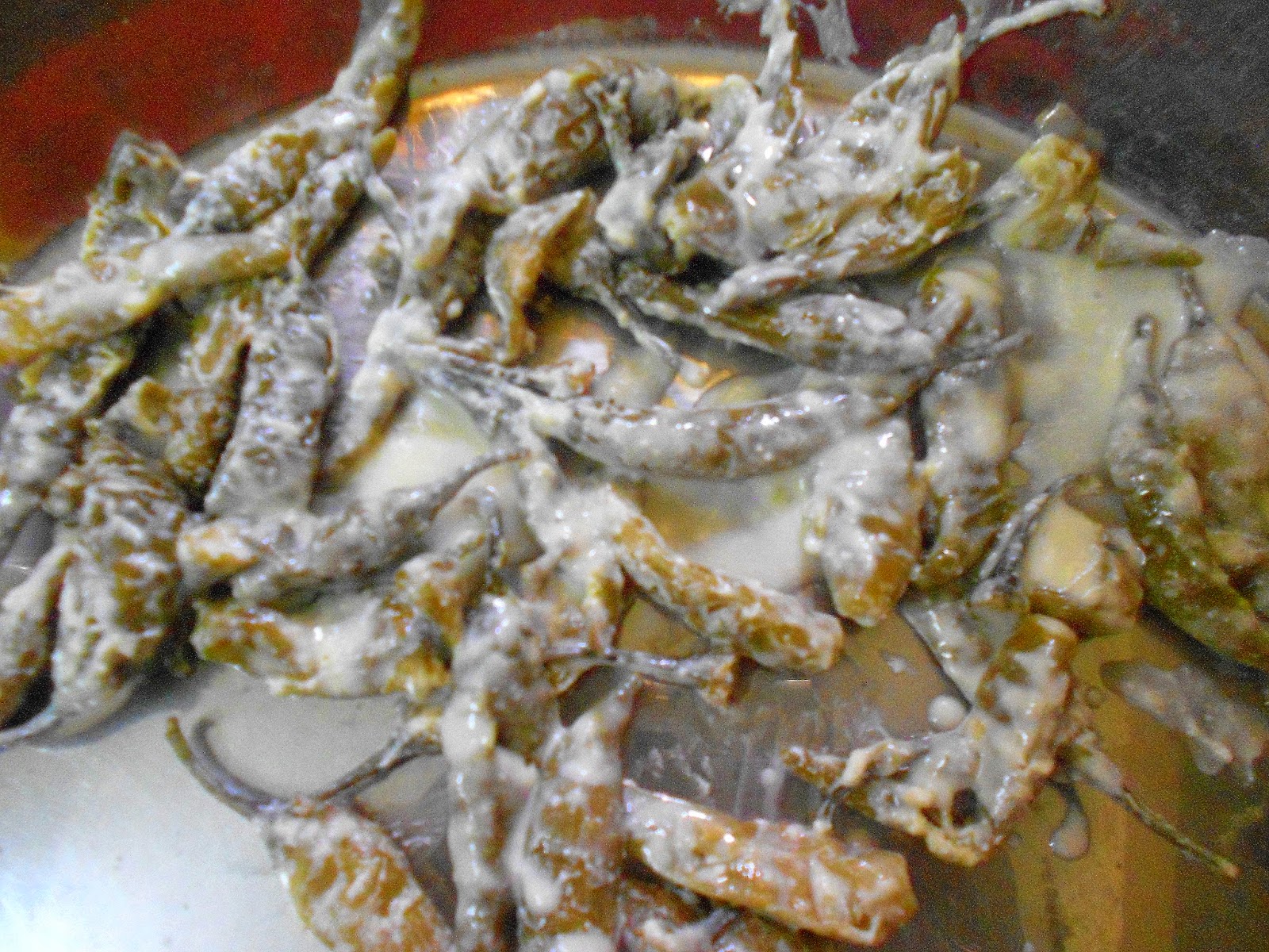 - In the evening put the chillies back into the left-over curds again & leave overnight!