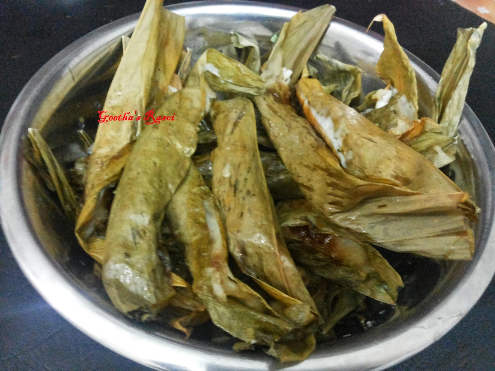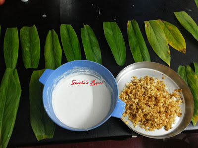 Patholi is a sweet dish prepared during occasions like Ganesh chathurti, Naagarpanchmi etc. Patholi is mostly prepared in Mangalore side especially by Konkani community. Its a very healthy dish and no oil is used because its steamed. its steamed in turmeric leaves(haldi paan in Konkani) for getting rich aroma of turmeric. So it has a very special flavour.