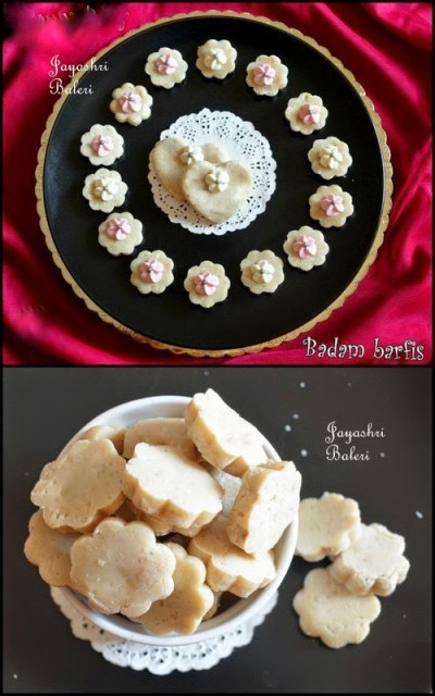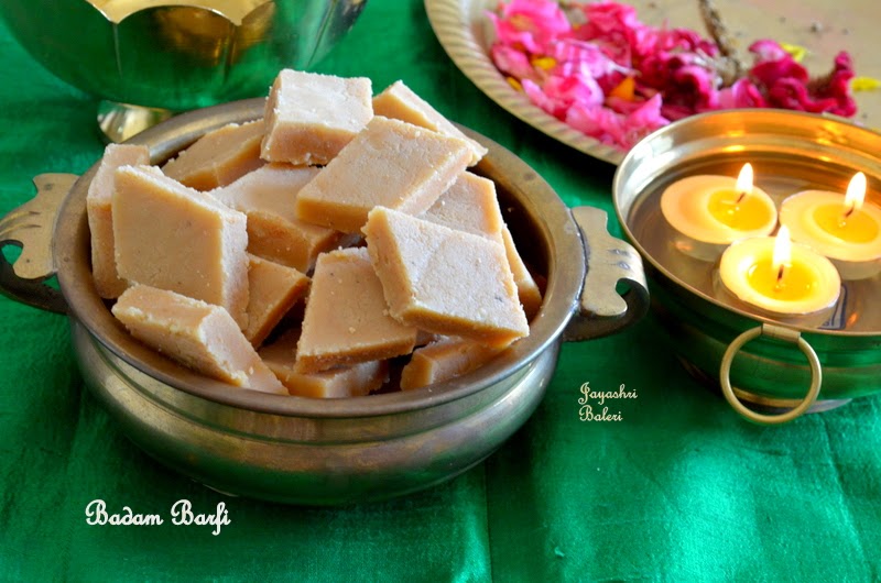 Today I would like to share with you all one of my most favourite recipes, Badam barfi or khadi as it is usually known as in konkani. These are just too delicious for words and no one can eat just one. It is an irresistible mithai for all occasions and kids and people of all ages take equal pleasure while indulging in this one. Do try it to know what I mean.
