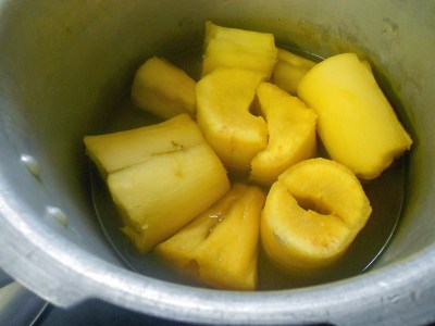 Tapioca – kappa or badi kanang as called in konkani is used to make a variety of delicious dishes . here is a very easy upkari that can be made with this .