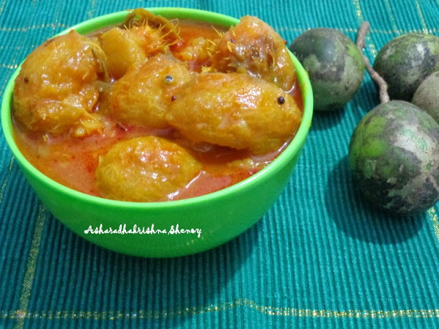 This spicy curry is made with the sweet variety of hog plum.Its available in markets in mangalore during season.This hot and sweet curry is a side dish normally had with rice or can be eaten with dosa too instead of chutney.
