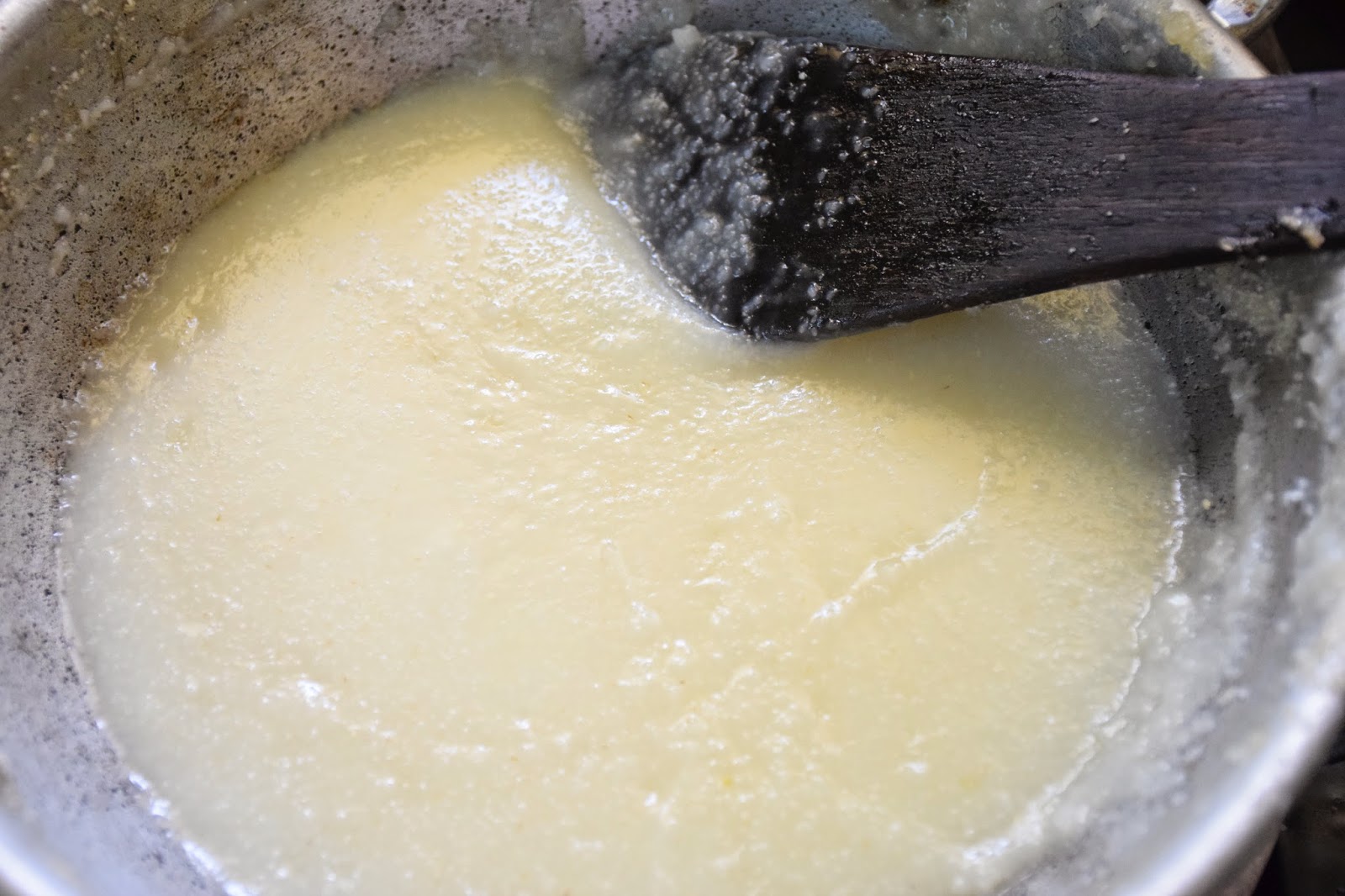 - When it is cooked ..keep stirring till it has thickened & come together as a single mass – like in the pic below .