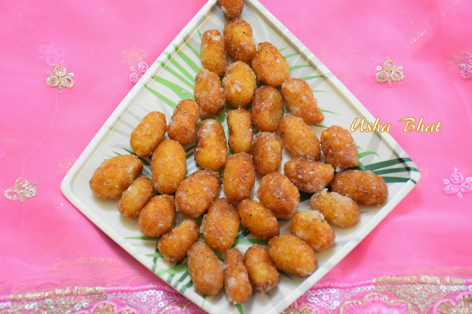 Jambul is a sweet traditionally made during festivals among the Kerala GSBs. It can be termed exotic as its hardly made nowadays ..as it has 3 stages of cooking .& in this age of fast life …some of these delicious sweets remain only in memory !! I too have tried this sweet now after so many many years & for this blog ! Though there are 3 steps ..they are actually very easy ones ..so try it out when you have some time to spare & want to surprise your family with a traditional sweet ,,these small cute oblong sweets are crisp on the outside with soft insides !