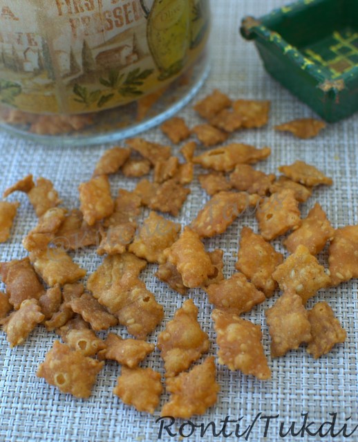 Ronti /Tukdi are commonly prepared in every household. There is a spicy as well all a sweet version. This one is the spicy one.They make a perfect evening snack with hot piping tea/coffee. Original recipe uses maida but i have used wheat flour just to make it a little healthy.