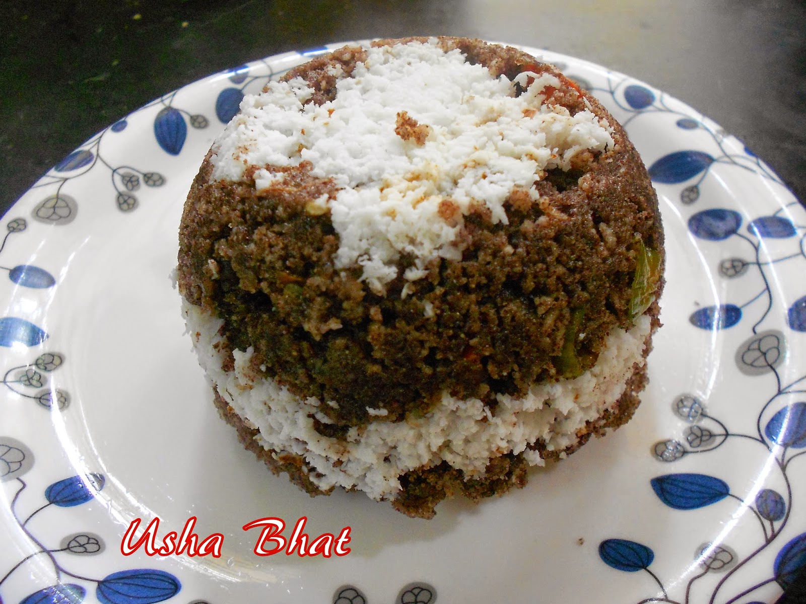 Usually puttu made in Kerala homes will have only rice flour & salt in their puttu with coconut as layers. but we amchis want to refine all taste according to our “jibbe ruchi”!