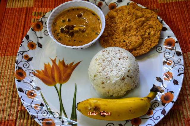 This can be served with a lot of various options like banana , pappads , Kadala curry ( black chick-pea ), milk and sugar & so on . my mother used to make Choniya Daali Humman with this & the memory of that combination still makes me drool !