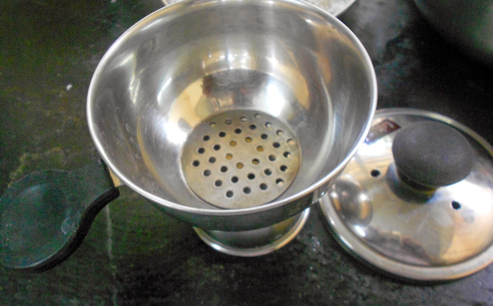 - I have this type which is very handy for me ! place the perforated disc at the bottom ! then add some grated coconut !