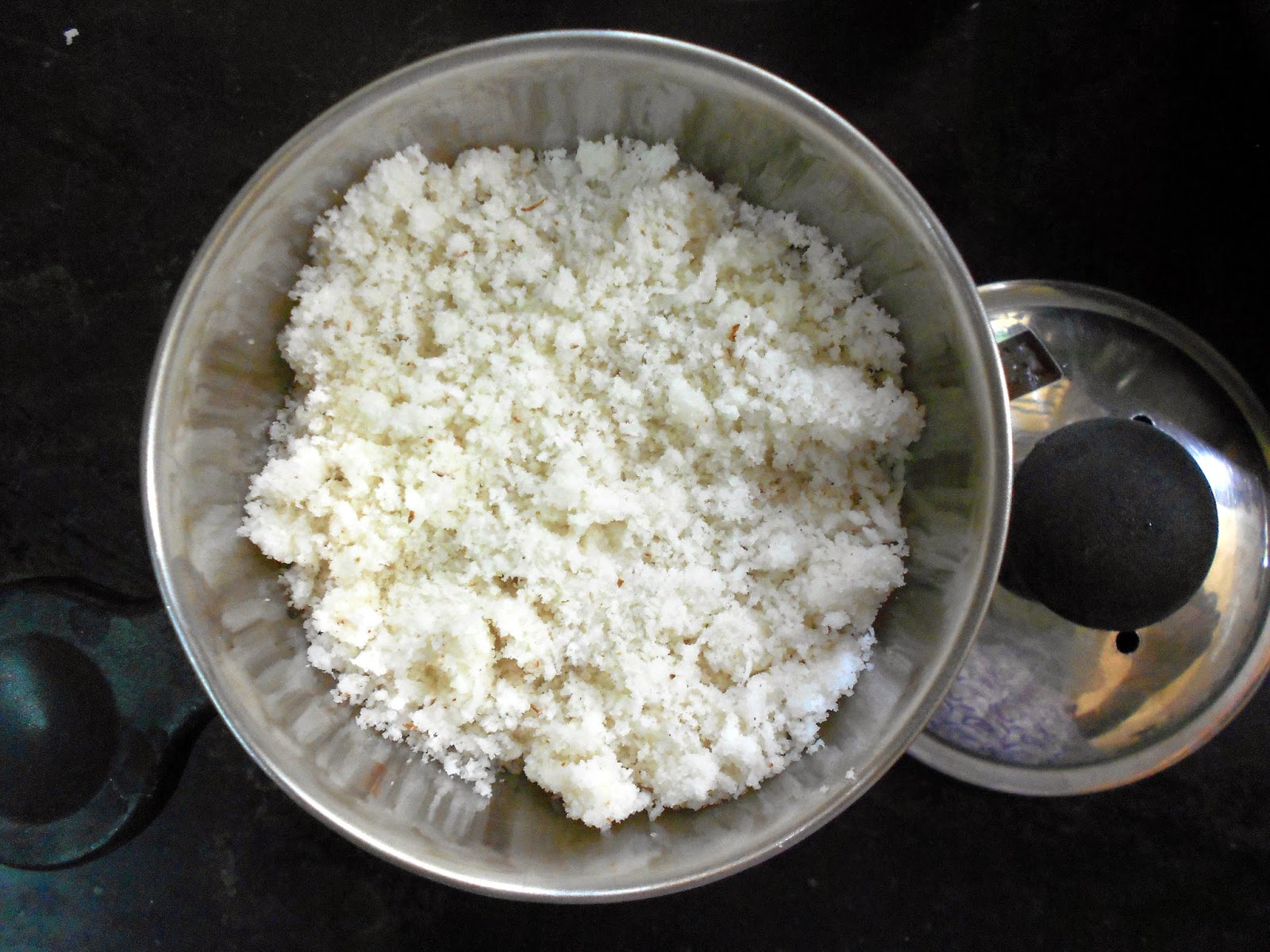 So we go ahead & add coconut too in the poot flour ! My amma used to joke that her mother used more coconut than flour but the taste was just awesome!
