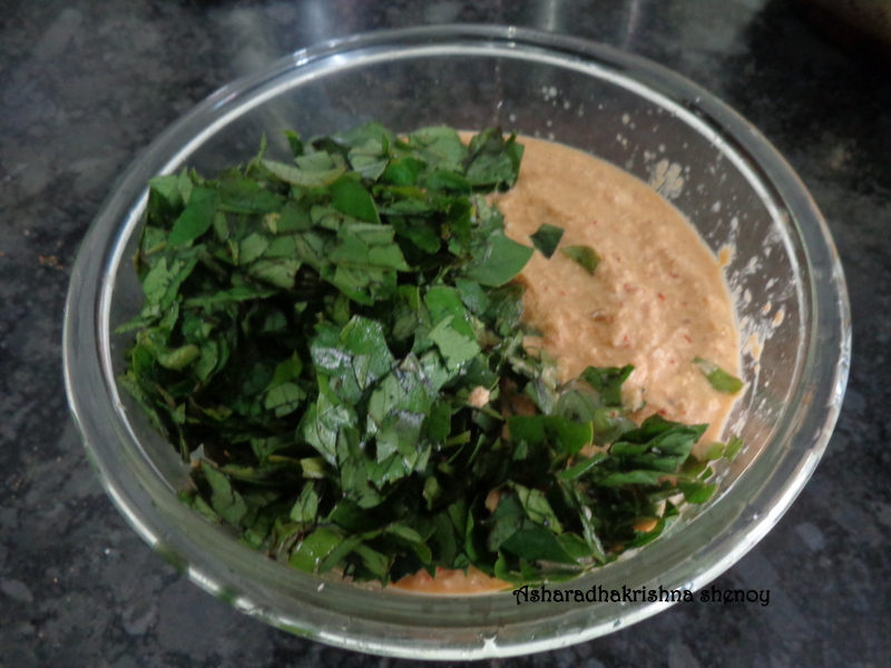 Add cleaned,washed and finely chopped taikilo to this batter and mix thoroughly.