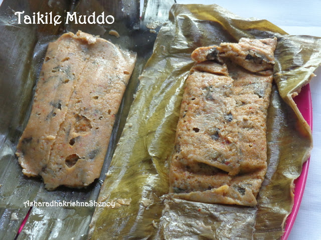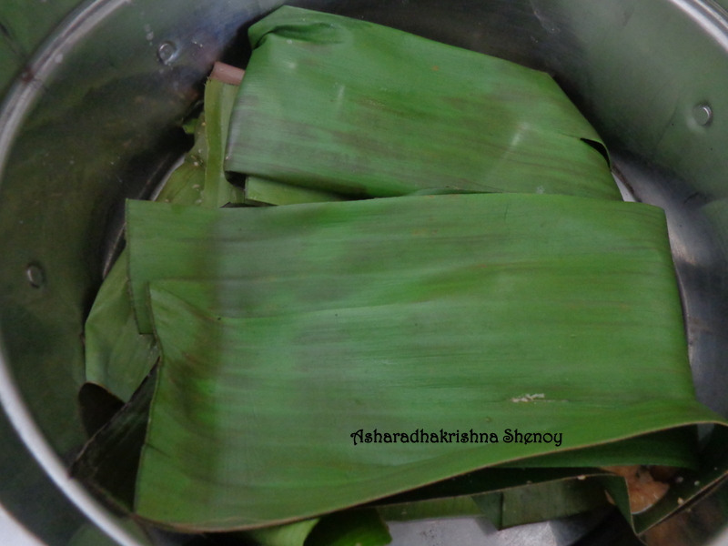 Few name this dish as Muddo and some as sanna khotto. Muddo is the same as Sanna khotto.Khotto is a small cup shaped,here jackfruit leaves are stitched together to give a shape called khotto which is then filled with batter, whereas muddo is steamed in banana leaves. The leaf gives a different flavour to this muddo.These can also be steamed in Idli moulds or in a plain plates too.