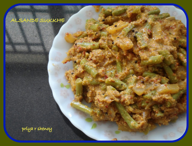 Alsandes or string beans / green beans is a vegetable loved by all. We usually prepare simple stir fries or upkaries from it.Sukke is a coconut masala based thick curry usually enjoyed as a side dish with rice. Here is the recipe.