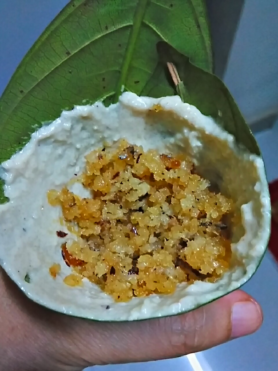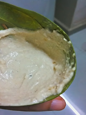 Fill it with the churna about a tbsp, depending upon the size of the leaf.