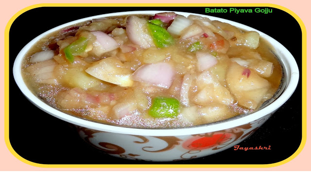 G.S.B and the dish gojju is always inter linked. G.S.B without gojju cannot be imagined. They know that a small variation in the ingredient used can have a great difference in the final taste. All our gojjus are very simple but taste heavenly. This recipe of Batato Piyava gojju is one among several lip smacking gojjus and is one of my favorite gojjus since childhood. This one is amchi kodial gojju.