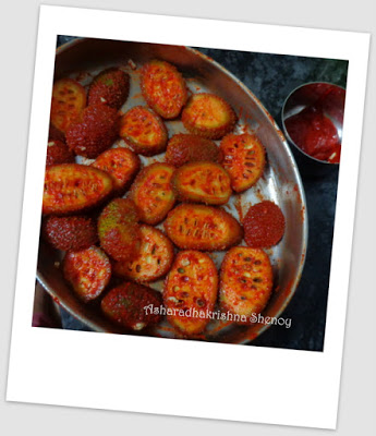 Phagil/Kantola/teasel gourd is the vegetable that belongs to the bitter gourd family.It is a seasonal veggies which is available during the rainy season.Though there are several recipes made with this vegetable,almost many of the konkanis prefer Phagil fry which is very tasty and favourite of all.I have shared phagil talasani and koot in this blog earlier.