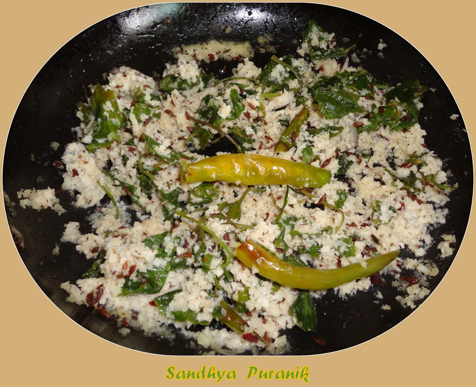 - Heat ghee in a pan and add zeera when they splutter add green chillies, ekpani leaves, and fry for a minute . then add the coconut and fry till a nice aroma starts arising. Switch off and cool completely