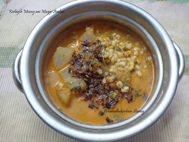 Here is a pic of Kirlayile Mooga Ambat by my friend – Asha Radhakrishna Shenoy – done the same way as mine with sprouted moog / green gram